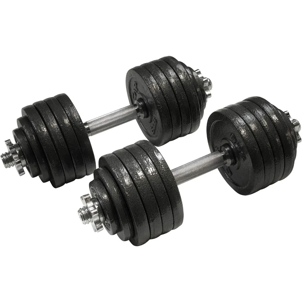 SET INCLUDES – 105 LBS TOTAL: TWO 17” dumbbell handles, FOUR 1.25-pound plates, FOUR 2.5-pound plates, SIXTEEN 5-pound plates, and FOUR star-lock collars. Great for targeting individual muscle groups or incorporating into a full body workout.
