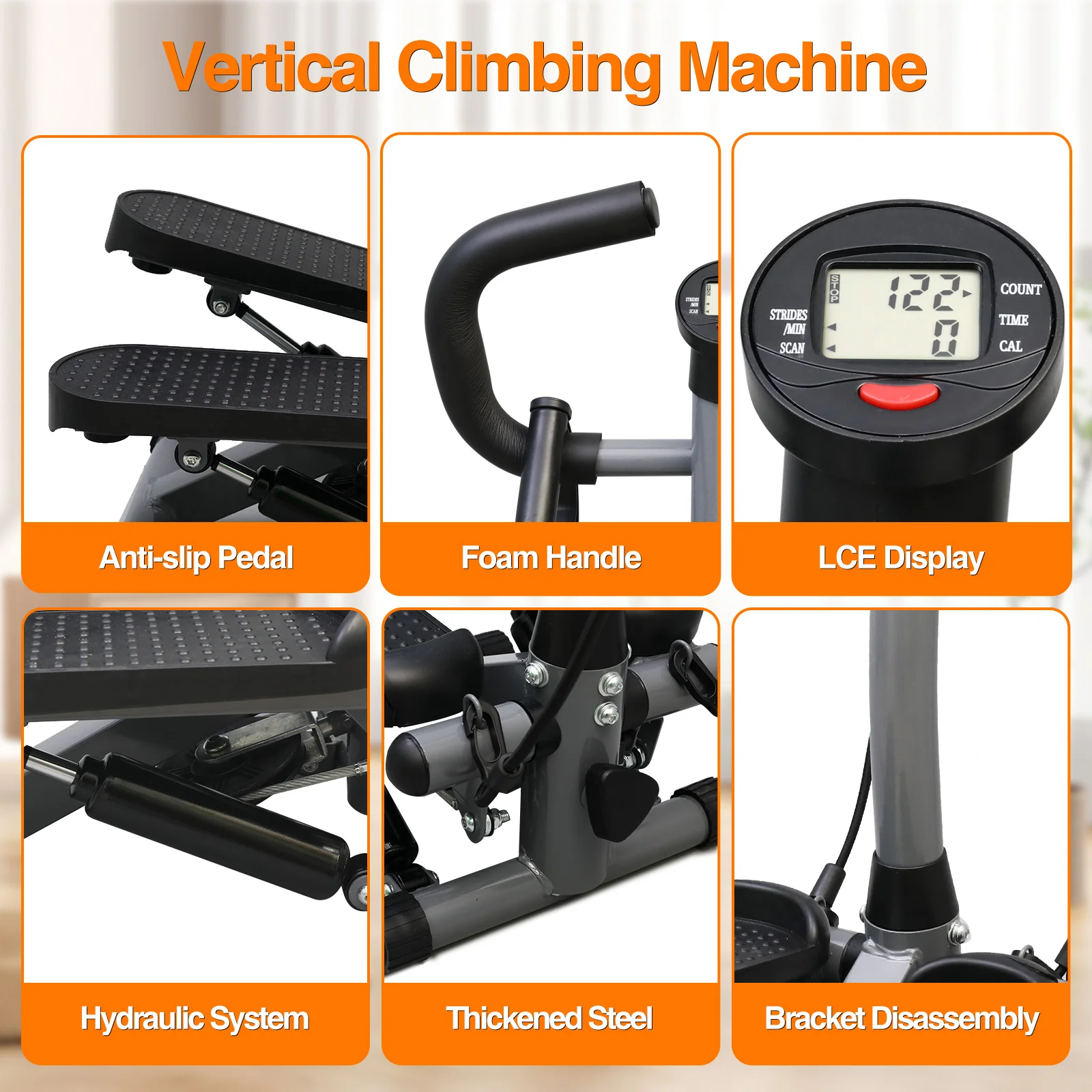 Exercise Stepper Machine Fitness Twist Stepper Stair Step with Handlebar LCD Monitor Resistance Bands Cardio Workout Home Gym